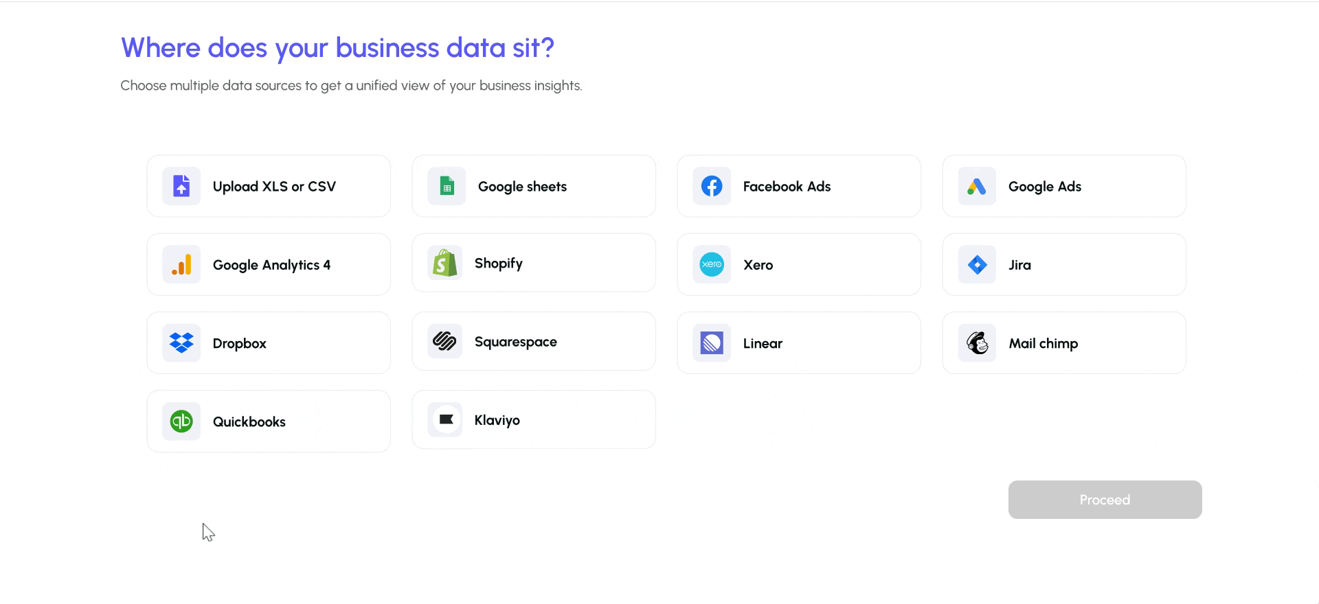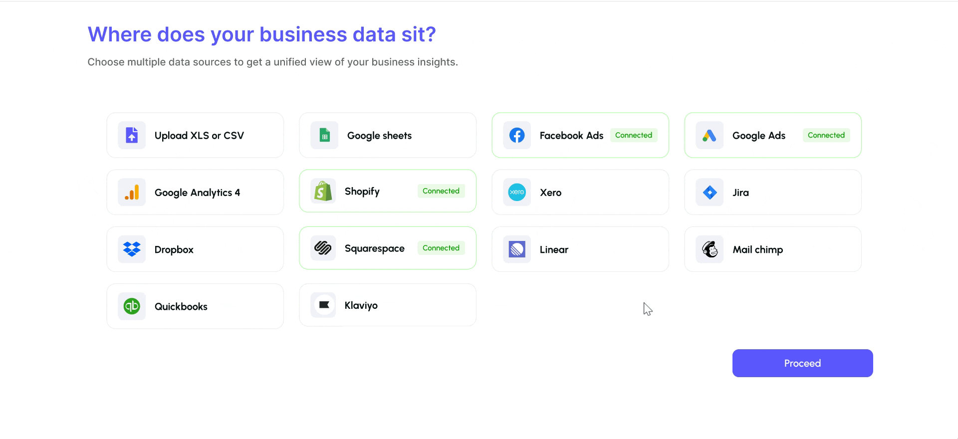 Securely link your business tools like Shopify, Google Ads, or Facebook in just a few clicks.